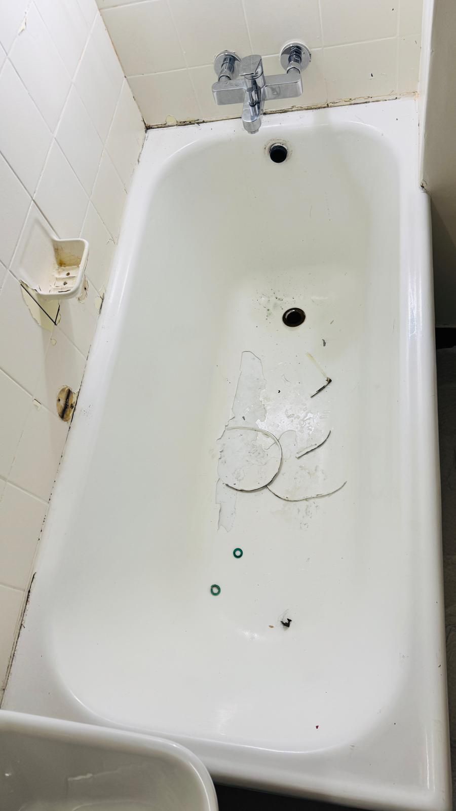 Nous installons une baignoire acrylique à encastrer à la place de l'ancienne, sans toucher aux revêtements.
